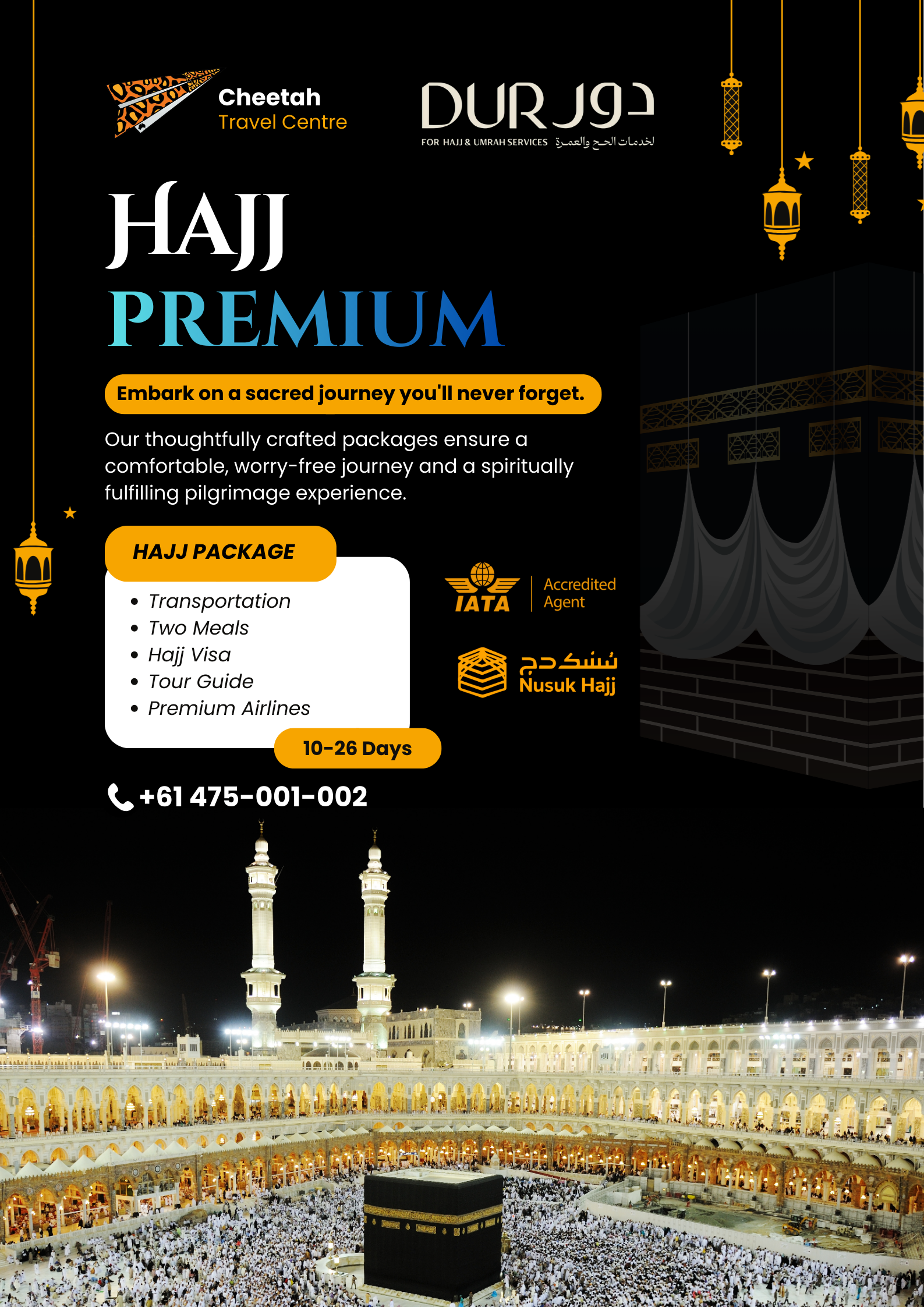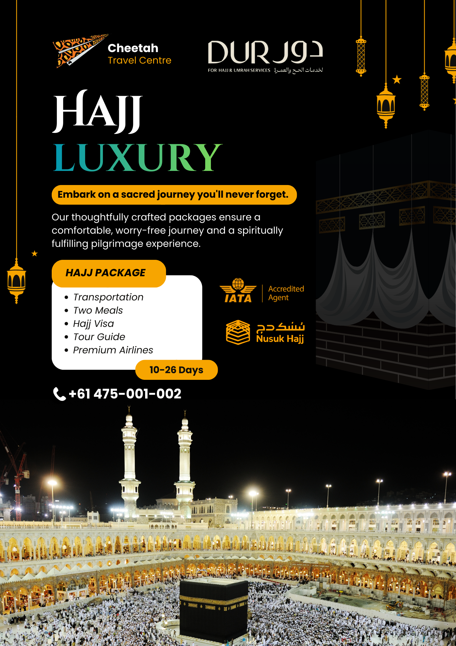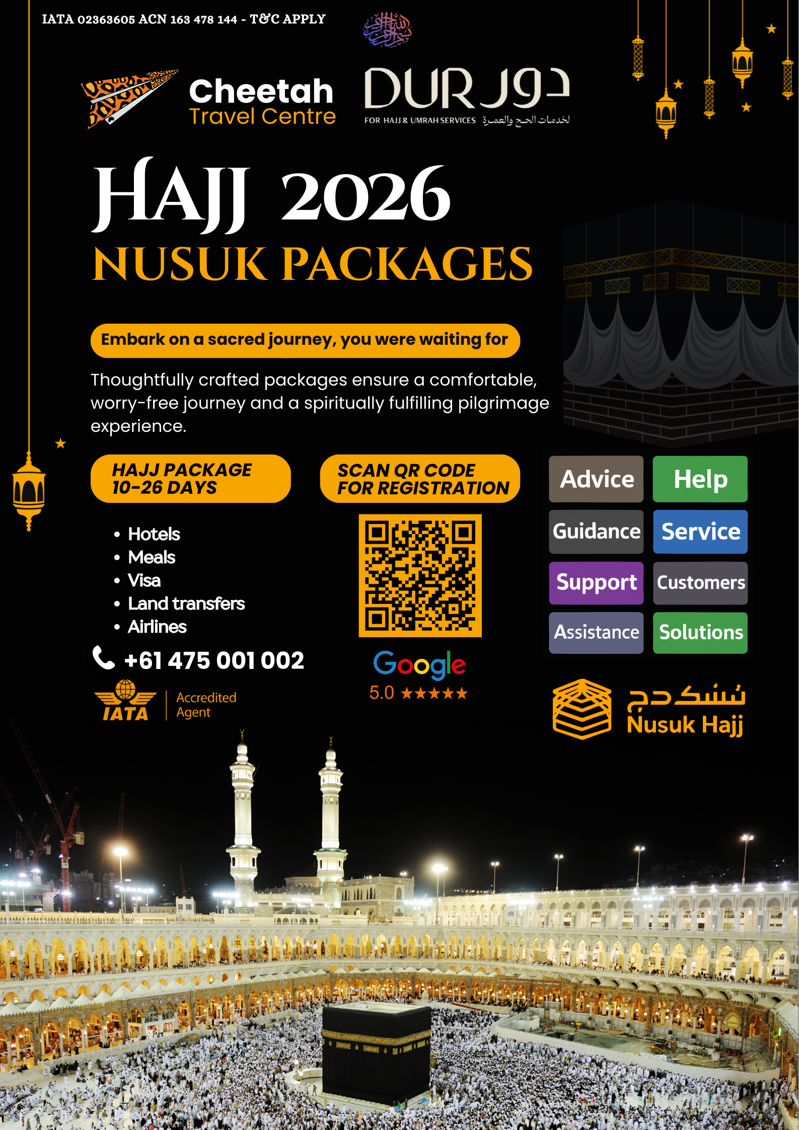 Ready to answer the divine call? π Join Cheetah Travel Centre and take the first step towards fulfilling one of the essential five pillars of Islam: the sacred journey of Hajj! We are now gathering Expressions of Interest (EOI) to form a guided group for the 2026 pilgrimage. This is your chance to embark on this profound, once-in-a-lifetime spiritual experience with a supportive community. Submit your EOI today to secure your place and begin preparing for this transformative journey with us.